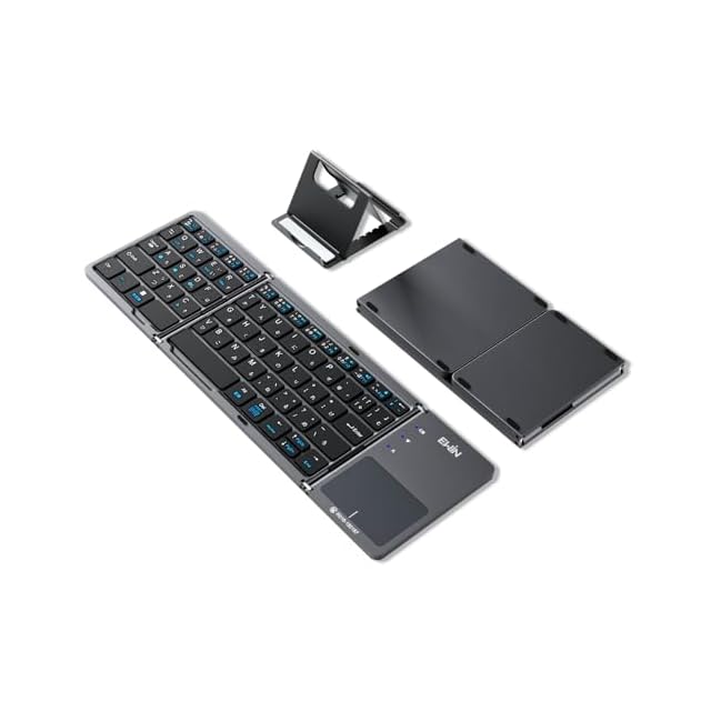 Ewin キーボード bluetooth 折りたたみ ワイヤレス タッチパッド付き keyboard 無線 日本語配列 ブルートゥース ios Android mac Windows対応 3台までのデバイスと接続可能 ipad iphone用 コンパクト 薄型 軽量 タブレット スマホ パソコン用 Type-C充電 スタンド付 グレー | つむぎ屋