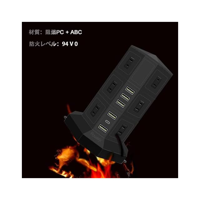 【頼りになる品質】本体は難燃性が最高クラスのPC樹脂素材と高品質の銅導体を採用し、電気火災の防止に有効です。そして、過負荷保護の回路デザイン及び防火材料により、過熱、過電流、ショートなどから充電した家電やデバイスを守ります。