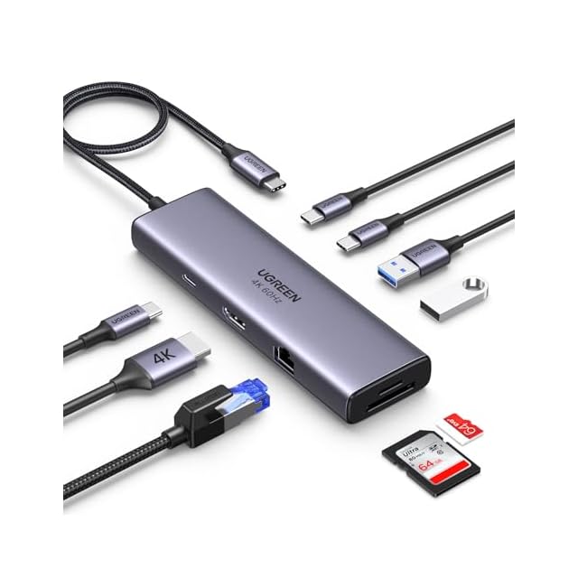 【9-in-1多機能なUSB Cハブ】USB Type-Cポート1をHDMI(4K@60Hz)×1、USB3.0×2、USBC3.0データ転送×2、USB PD対応充電ポート×1、SD&マイクロSDカードスロット×1、ギガビットイーサネット×1に増設できる、USB Type-Cハブです。 あらゆるポートは同時に使用できます。 UGREEN usb-c ハブはノートパソコンにUSB Cポートが1つしかない問題を完璧に解決し、USBポートに挿すだけですぐに使え、大幅に作業効率を改善することができます。オフィスでの利用はもちろん、在宅勤務にも最適なUSB-Cハブです。