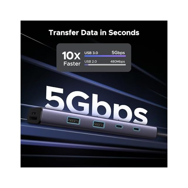 【2A2C-最大5Gbps高速データ転送】このUSB Type-c ハブが小さいけれど多種な機能を備えて、より実用的、ポートが制限されているデバイスに適しています。2つUSB3.0ポート+2つUSB Cポート付き、最大4台までのUSB機器を接続できます。USB3.1 Gen1(USB3.0)ポートは、従来型より10倍ぐらい速い5Gbpsのスーパー転送スピードで、容量が大きくなりやすい写真・映像データも高速で転送でき、データ同期時間を大幅に短縮させます。キーボード、マウス、USBディスク、ハードディスクなどをMacBook Proに接続でき、数秒以内にHD映画を転送することが可能です。