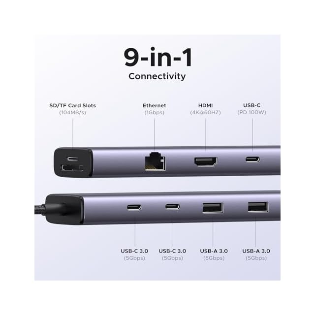 商品名:UGREEN Revodok 109 USB Cハブ 9-IN-1 【USB-A*2+USB-C*2】USB3.0ハブ 4K 60Hz HDMIハブ Type-C PD100W 急速充電 USB-C 5Gbps高速転送 SD Micro SD/TFカードリーダー 付き タイプC アダプター MacBook air M1 M2 Pro Dell XPS HP などに対応