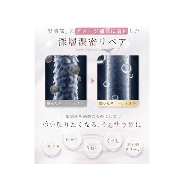 ✨【べたつかず軽い仕上がり】深層濃密リペア処方でハイダメージも芯から補修して潤いをキープ。サロン帰りのようなサラサラな指通りに。湿気に強くスタイリング効果が持続