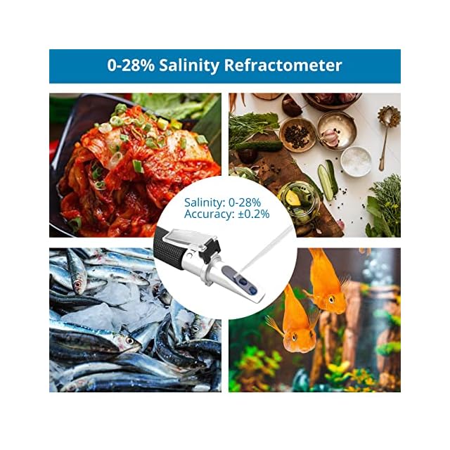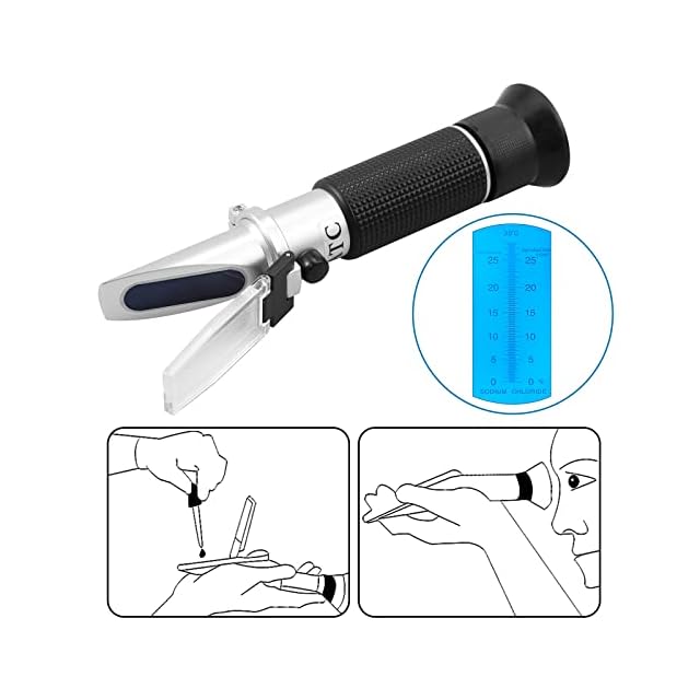 【塩分屈折計】塩水または塩分の測定、塩水・塩水の濃度の監視とコントロール、水族館・海洋用途に最適。