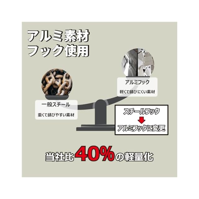 【特長1】 超軽量 高強度 アルミ合金 フック使用