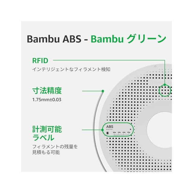 Bambu Lab 3D プリンター用フィラメント, ABS フィラメント, 耐久性高い, 寸法精度1.75mm±0.03mm, 耐熱性&耐水性, AMS互換性あり, 3D造形材料, 高温再利用可能なスプール付き,1kg Bambu グリーン | つむぎ屋