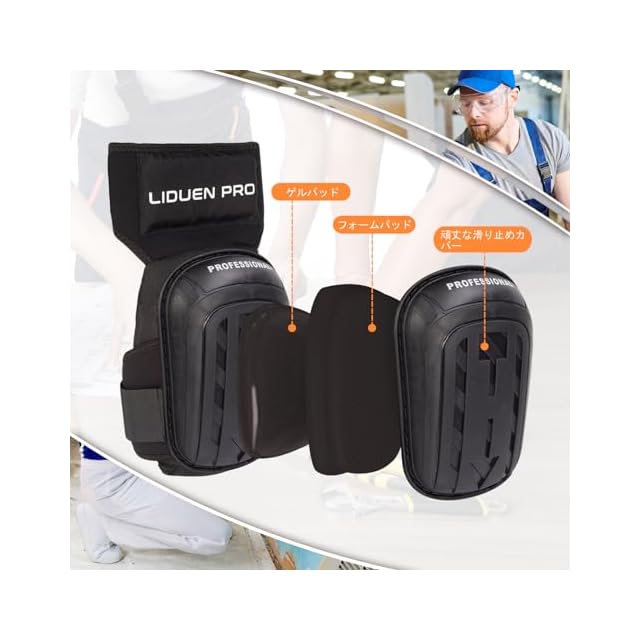 ひざパット 作業用 快適なゲルクッション構造 LIDUEN PRO ひざサポーター 厚手 滑り止め フォーム ニーパッド ガーデニング、フローリング作業用 両膝セット…
