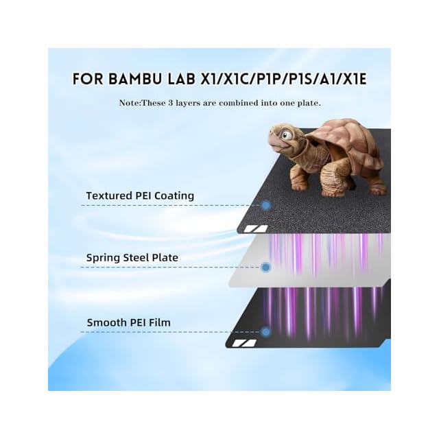 【適用の3Dプリンター】for Bambu Lab X1/X1C/X1E/P1P/P1S/A1に適します。両面PEIプリントベッドです。ご注文の前に、3Dプリンタープラットフォームのサイズをご確認ください