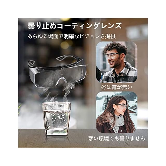 【透過率94%ゴーグル】透過率94%クリアな見えやすさを実現 防水性、水滴が付着しずらく、作業の邪魔をしません。 防霧コーティングがされている為、遠近関係なく見通しが見えます。