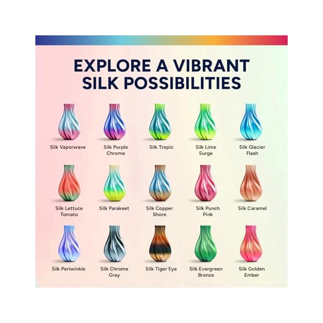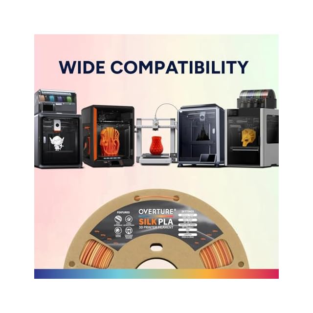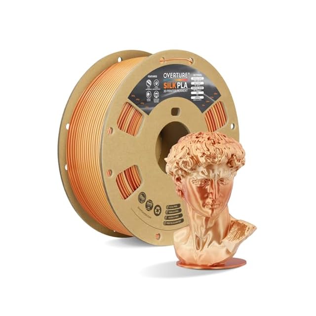 【光沢のあるシルクPLAフィラメント】オーバーチャーシルクPLAフィラメントは、3Dプリントされた作品に滑らかで艶やかな仕上げを提供し、芸術やデザインに高級感と洗練さを加えます。その卓越した寸法精度と一貫性により、このフィラメントは正確で詳細な印刷をし、プロフェッショナルな品質でアイデアを具体化することができます。