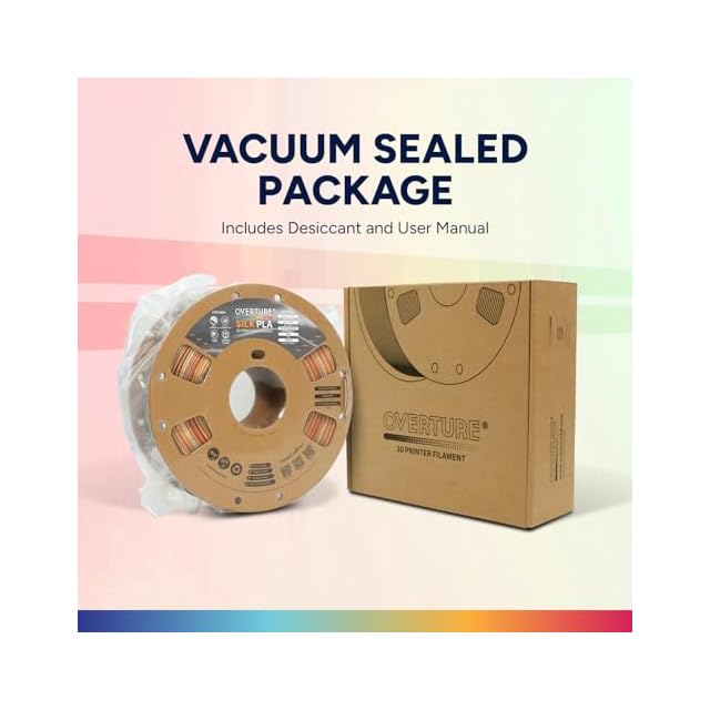 【安心でスムーズな印刷】安心してプリント可能。Overtureフィラメントは専用サポート付きで、未開封スプールは1年間の保存寿命があります(適切な保管が必要)。シームレスなプリント体験のために迅速な解決をお約束します。信頼できる3Dプリントパートナーです。