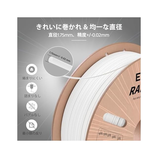 【最高の精度と一貫性】精密な製造工程により、直径1.75mm、精度±0.02mmのフィラメントをします。厳格な公差と完璧な寸法精度は、フィラメントのスムーズで一貫した供給をします。