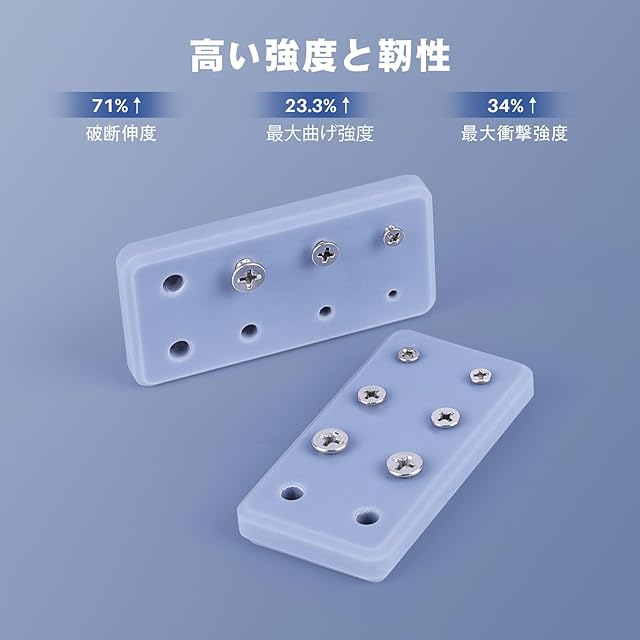 【高い強度と靭性】ELEGOO ABSライク樹脂3.0は高い強度、耐衝撃性、靭性のために設計されています。印刷されたモデルは、穴あけや衝撃に耐え、構造的完全性を維持し、変形しにくく、機能的なプロトタイプ、機械部品、工業部品に最適です。