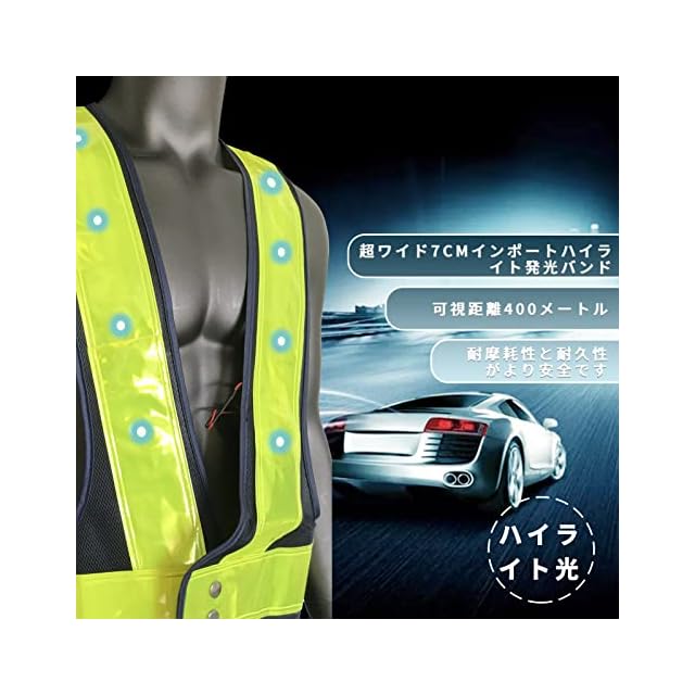 ✔高品質:安全ベストは、140gの樹脂コーティングされたメッシュ生地、120gのオリジナルの布の縁取り、7cmの超ワイド輸入高輝度発光ベルト、および400mの可視距離で作られています。 -20℃までの耐寒性、耐摩耗性、耐久性、安全性。