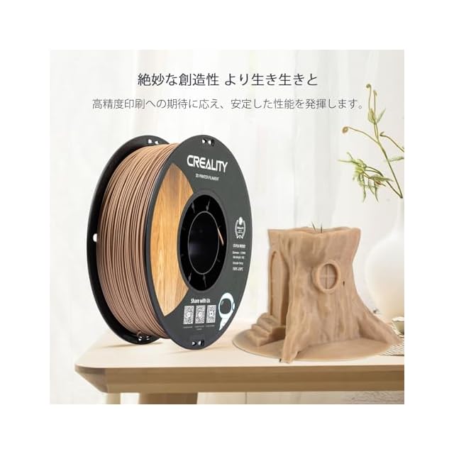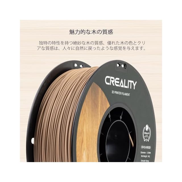 Creality ウッド フィラメント PLA 木製PLAフィラメント 3Dプリンタフィラメント1.75mm、滑らかなシルクの質感、強靭性、1kg(2.2ポンド)/スプール印刷フィラメント、3Dプリンター用 フィラメント 木造フィラメント素材 3Dペン用 木部繊維(ウッド/木質/Wood) | つむぎ屋