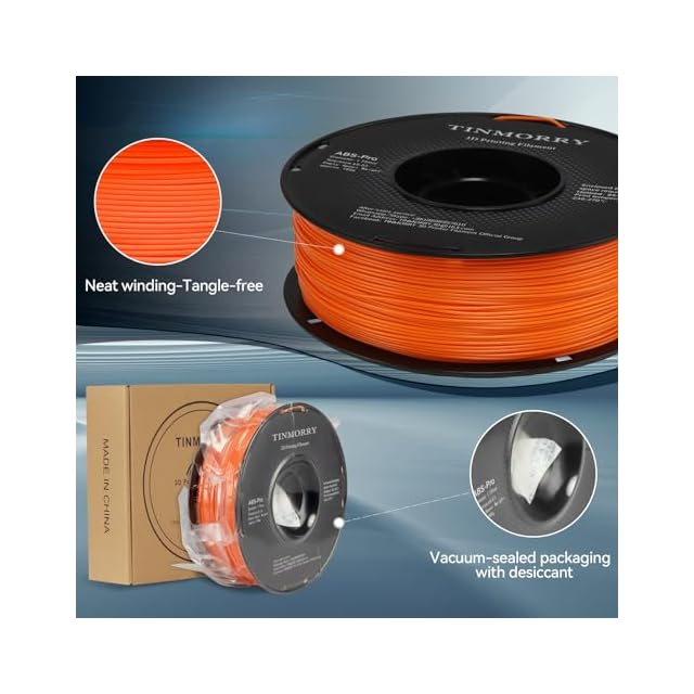 TINMORRY ABSフィラメント1.75mm、ABS(Pro)3Dプリンタフィラメント1KG、良好な耐熱性、強力&耐久性、寸法精度±0.03mm、Bambu Lab X1C FDM 3Dプリンターとの完璧な互換性(3D Printer Filament Orange) | つむぎ屋