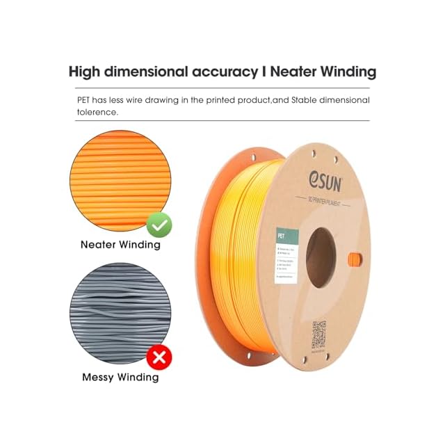 【高い互換性】PETは高い靭性と優れた機械的特性を持っており、信頼性のある高強度部品を必要とするプロフェッショナルから、詳細で機能的なプロジェクトを手掛けるホビーストまで、幅広いニーズに応える多用途なフィラメントです。その印刷のしやすさと機械的特性により、工業用プロトタイプからカスタムスポーツ用品まで幅広く適しています。