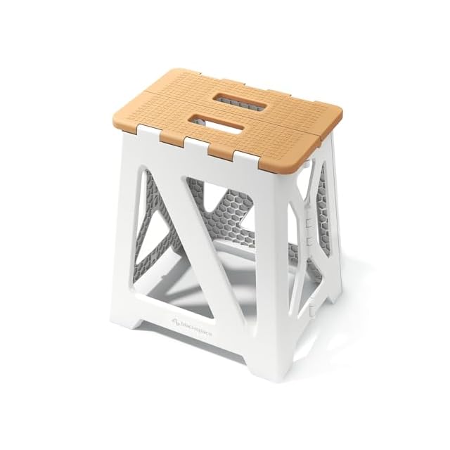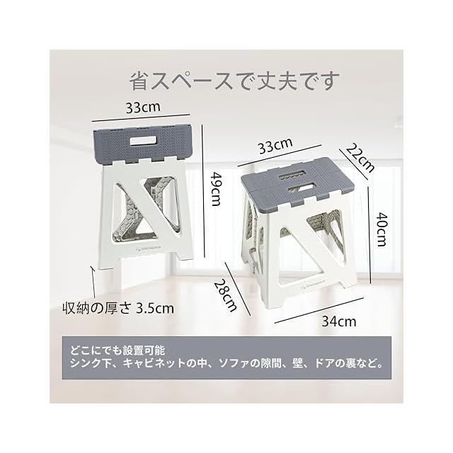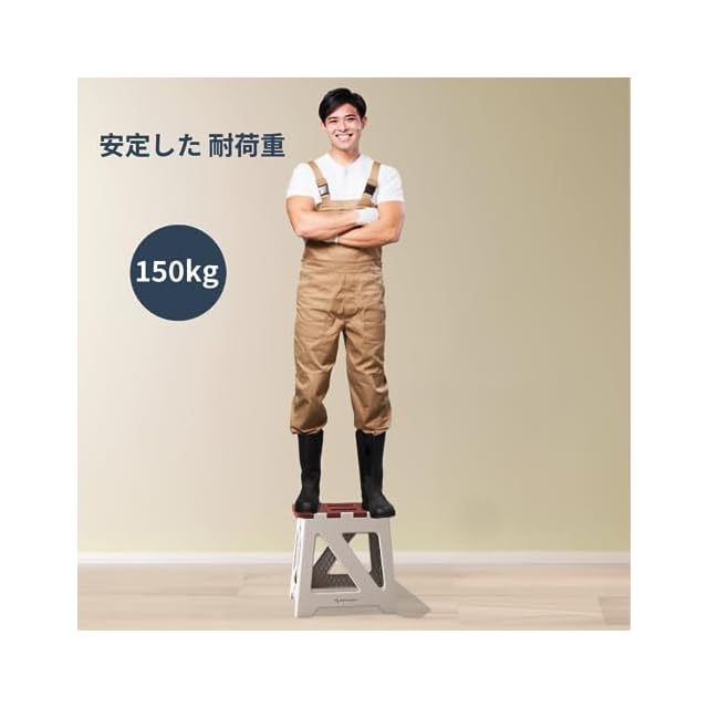 BLACKSPACE 折りたたみ椅子 高さ40CM ステップ台 スツール 踏み台 折り畳み チェア 脚立 滑り止め付 軽量 頑丈 室内 洗車 釣り 玄関 洗面所 耐荷重150kg [カーキ ホワイト]