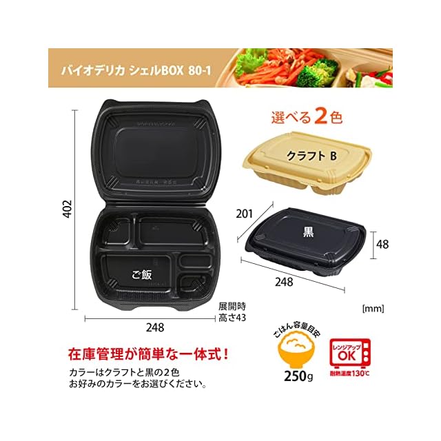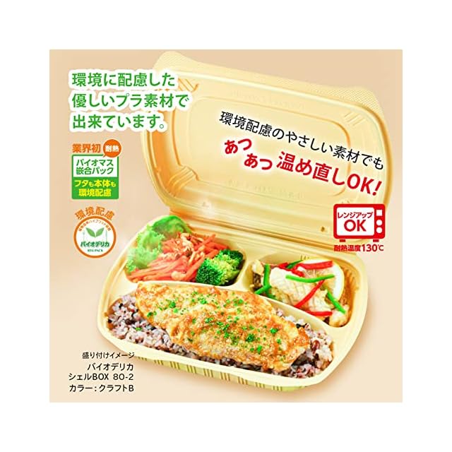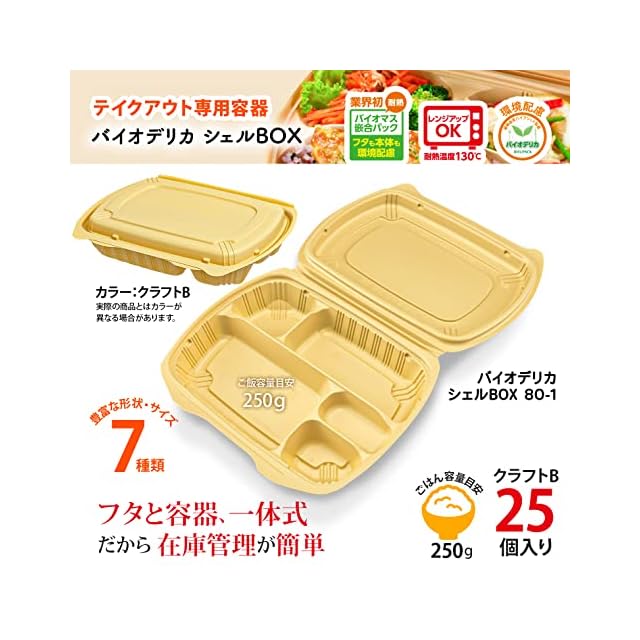 リスパック 使い捨て 容器 デリバリー テイクアウト ランチ 弁当 内嵌合蓋 バイオデリカ シェル BOX80-1 クラフトB 25枚入 レンジ対応 日本製 RHDT302