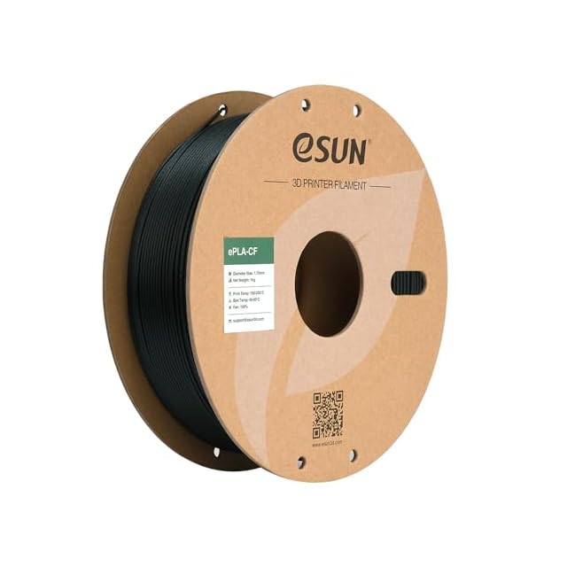 【炭素繊維強化PLA】:eSUN ePLA-CFフィラメントは、強度と弾性率を向上させるために炭素繊維を添加しています。PLAをベースに、有機浸透処理された短繊維の炭素繊維を添加することで、より優れた性能と高い曲げ弾性率を提供します