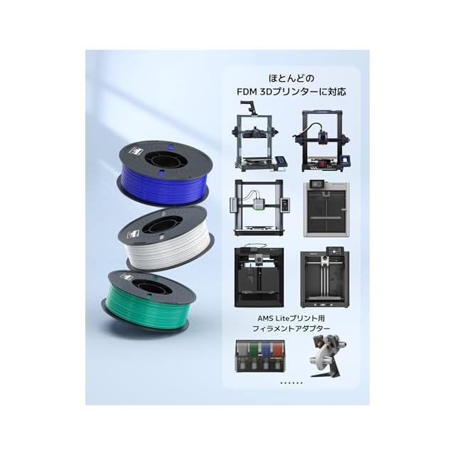 【幅広い互換性】屋外での使用を想定して設計されており、市販されているほとんどの1.75mm 3Dプリンターと互換性があります。印刷前にフィラメントを乾燥させることをお勧めします。