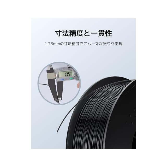 【寸法精度と安定性】厳格な公差により、直径1.75mmのTPUフィラメントは+/- 0.02mmの寸法精度を確保し、安定したスムーズな供給を実現します。