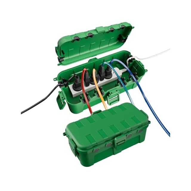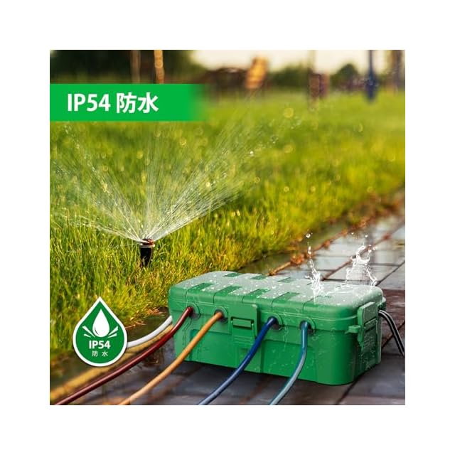 【頑丈で実用的】強化PP素材で作られており、IP54の防水等級を備え、雨、雪、水、ホコリ、汚れなどに耐えることができます。さらに、ケーブルクリップが延長コードをしっかりと固定し、誤って外れるのを防ぎます。凸型の上蓋は水の溜まりも防止します。
