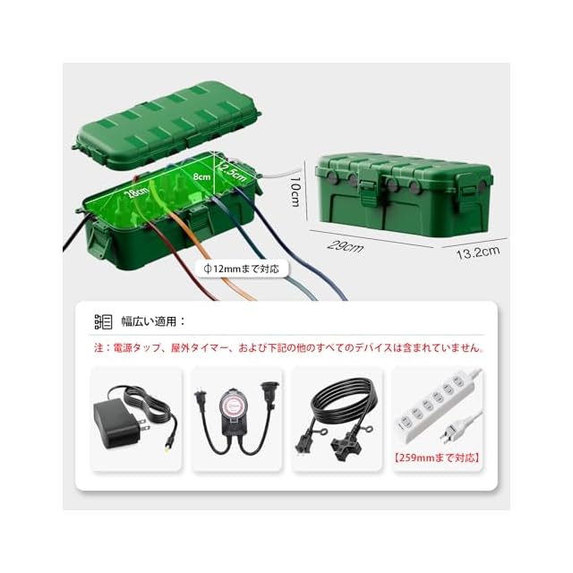 【幅広い互換性】屋外の延長コード接続を安全に保護するために設計されています。延長コードボックスには6つのケーブルポートが装備されており、12AWG/3Cまたは直径Φ12mmまでのケーブルに対応可能です。各ポートには防水用のゴムパッキンが付いており、水の侵入を防ぎます。12/14/16ゲージコード、編組ケーブル、平型ケーブルの密閉に最適です。