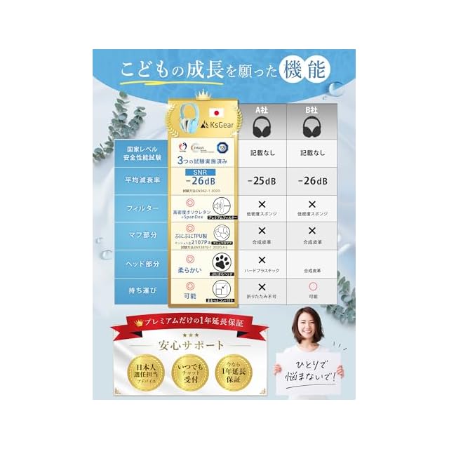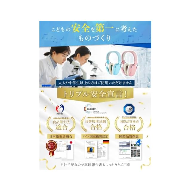 ✅✅✅✅✅【当社だけ!イヤーマ唯一!食品衛生法試験実施】 子どもは遊びから学んで成長し時には口に入れる事がありますが、本来イヤーマフは食品衛生法非適用品なところを当社では子供の安全を優先し試験を実施確認をしています。口に入れても安心のお墨付きイヤーマフは当社だけです