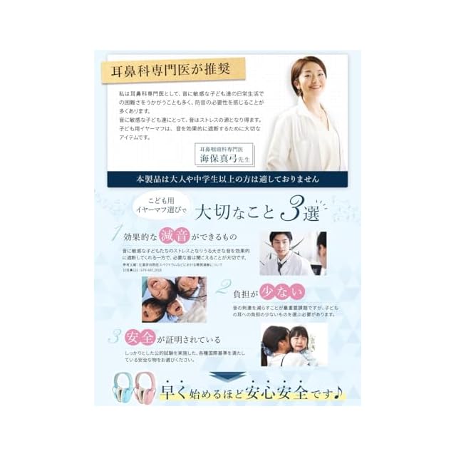 ✅【耳のプロ耳鼻咽喉科専門医×聴覚過敏耳栓ブランドが本気で開発⚕】耳のプロ耳鼻咽喉科専門医と聴覚過敏耳栓のトップブランドが子どものために開発しました。軽さやつけ心地は素材から選定し、子どもが装着しても負担が少ないイヤーマフに仕立てました