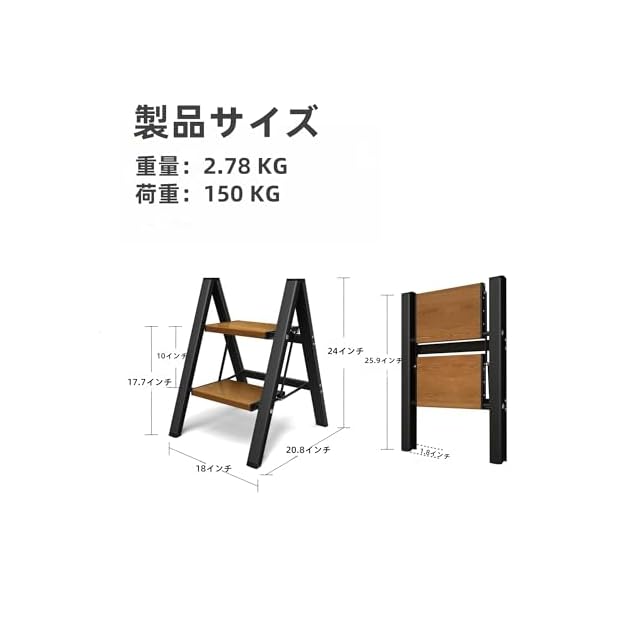 【高品質な全アルミ製|軽量&耐久性に優れた設計】本製品は高品質なアルミ合金を使用しており、サビに強く、繰り返しの使用でも劣化しにくい耐久構造です。最大耐荷重150kg、本体重量はわずか約2.8kgと超軽量で、女性や年配の方でも簡単に持ち運びが可能です。