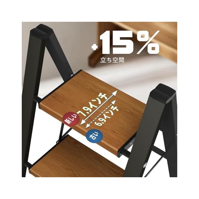 【幅広20cmステップ・滑り止め付き】約20cmのワイドステップに滑り止め加工を採用。高い棚の荷物整理、エアコン掃除、ベランダでの植物ケアなど、幅広いシーンで安定感のある作業をサポート。シニアの方や女性にも安心の設計です。