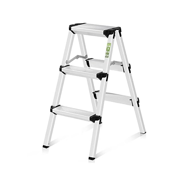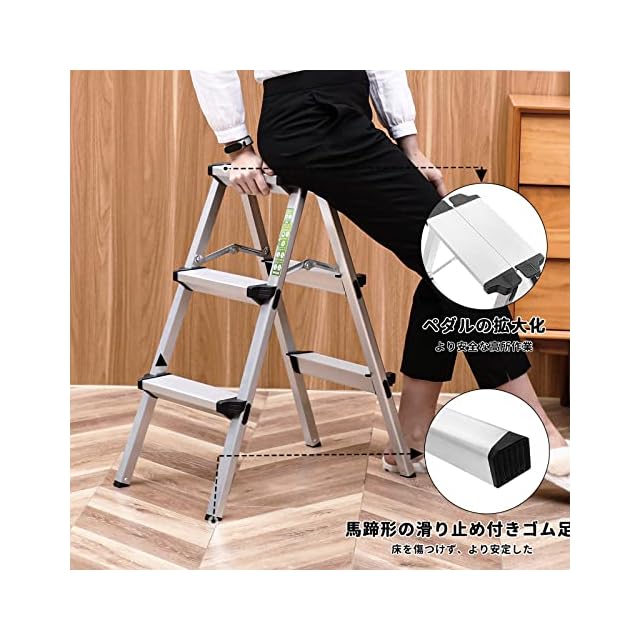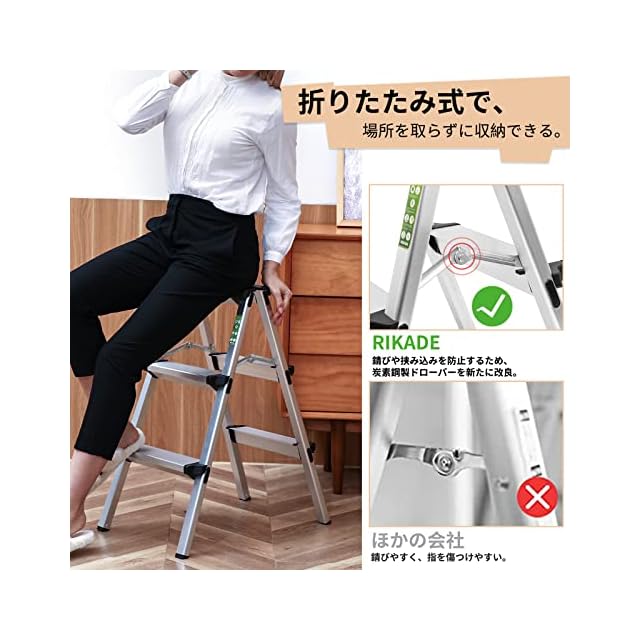RIKADE 脚立3段 梯子 アルミ 脚立 折りたたみ ミニ 軽量 きゃたつ 踏み台 軽量 安全 ステップ アルミ 三段 脚立 折りたたみステップ 耐荷重150KG 滑り止め付き ステップ台(シルバー三段) | つむぎ屋