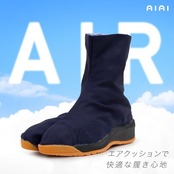カカト部分にエアクッションを内蔵しており、歩行時に足や膝にかかる衝撃を吸収し和らげます。一日中地下足袋を履いて動いても翌日に疲れを残しません。