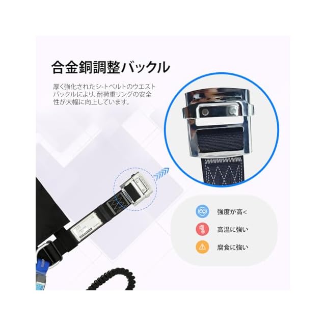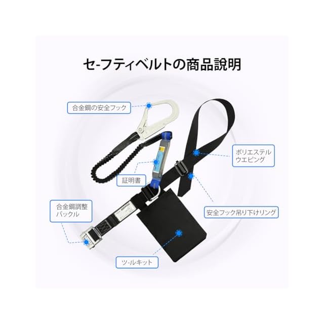 フック吊り下げ機能:本製品にはフック吊りが付いており、使用しないときはハーネスを吊り下げておくことができ、安心です。安全帯どうベルト 新規格 安全帯 安全ベルト。