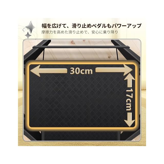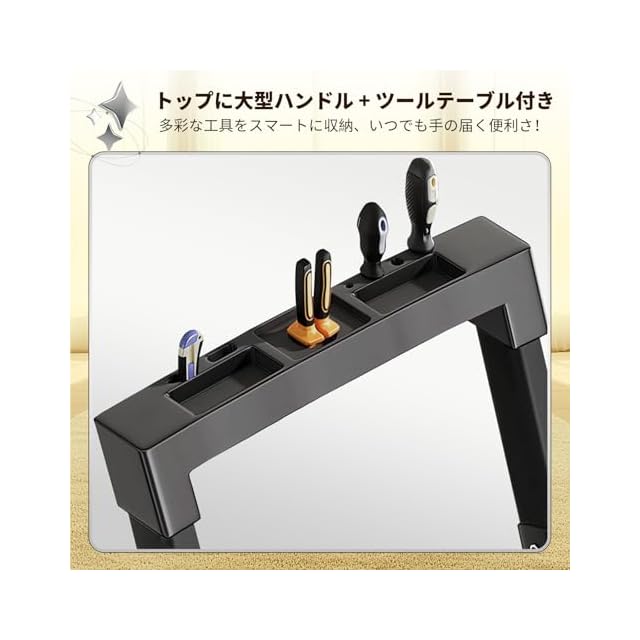 卓越した性能:特許技術による4点支持設計で、滑り止めの足がしっかりと地面を捉え、作業中に不安を感じることはありません!特別な表面処理を施した踏板は、滑りにくく、使用時の信頼性を向上させます。雨の日でも問題なく使用できます。