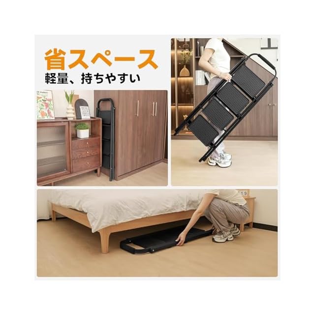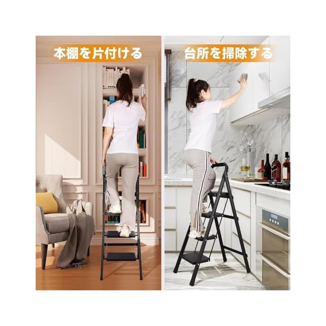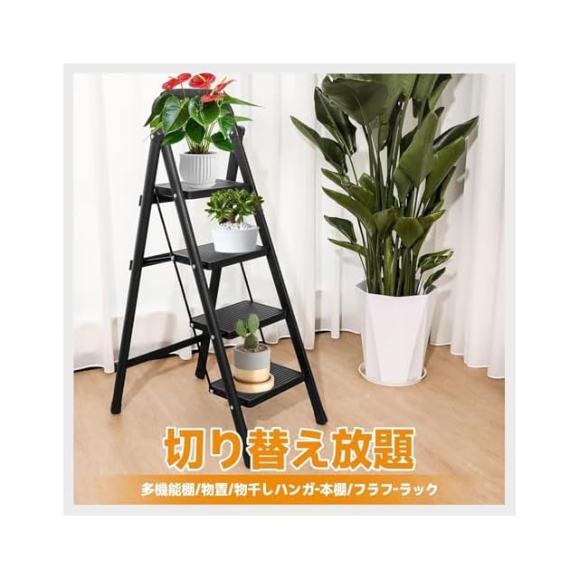 【折りたたみ設計】:踏み台 4段は、コンパクトに折りたたむことができます。収納スペースを節約し、持ち運びも簡単です。