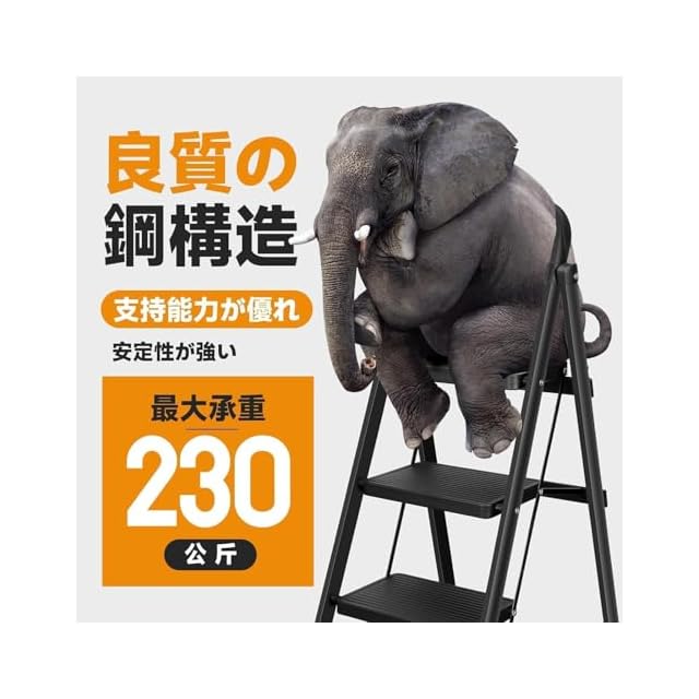 【軽量&耐荷重】:脚立は軽量なのにもかかわらず、最大230KGまで耐えることができます。頑丈な作りで使い勝手も抜群です。女性は簡単に持ち運びたり折ったりすることもできます。