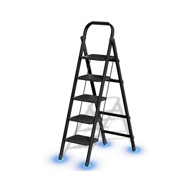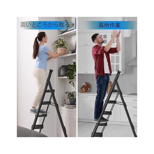 【折りたたみ設計】:踏み台 5段は、コンパクトに折りたたむことができます。収納スペースを節約し、持ち運びも簡単です。