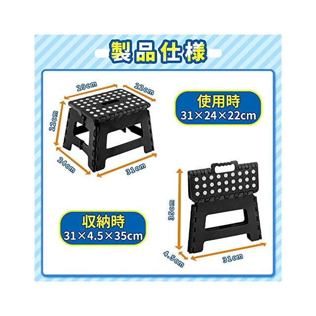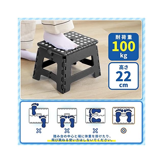 【100kgの超耐荷重】軽量ながらも頑丈な設計で、最大100kgの重量に耐えることができます。洗車やキャンプ、キッチンの高所作業など、様々なシーンで活躍してくれる頼れる踏み台です。