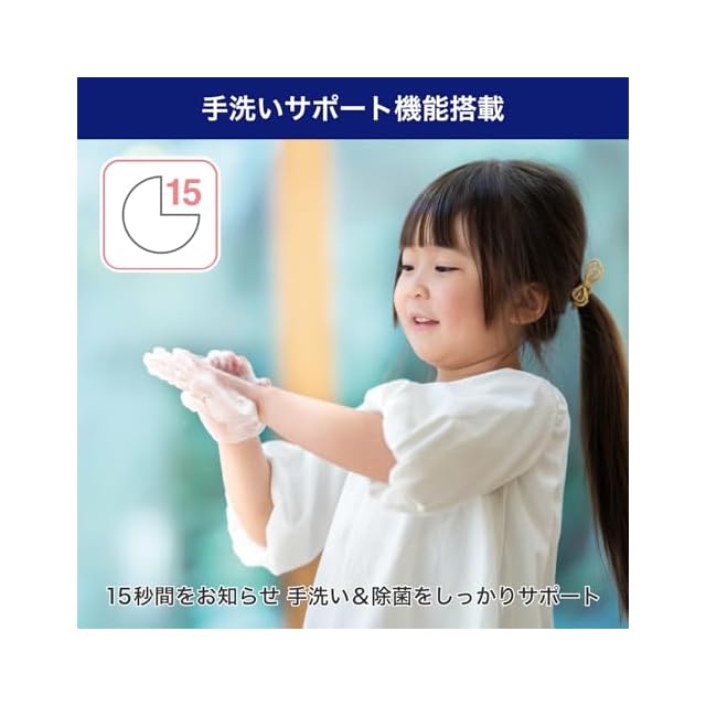 【手洗いサポート機能】15秒間赤く点滅し、終了すると青く光ります。手洗いの目安に役立ちます。