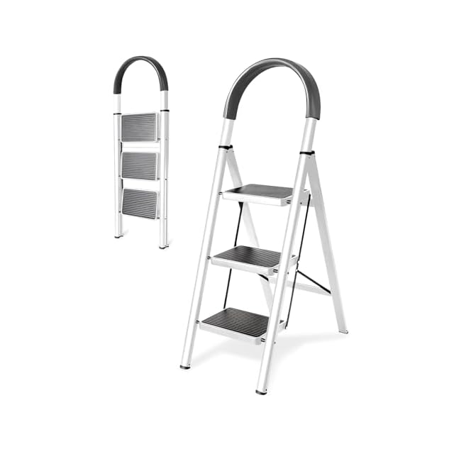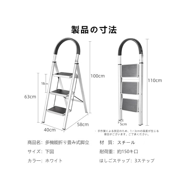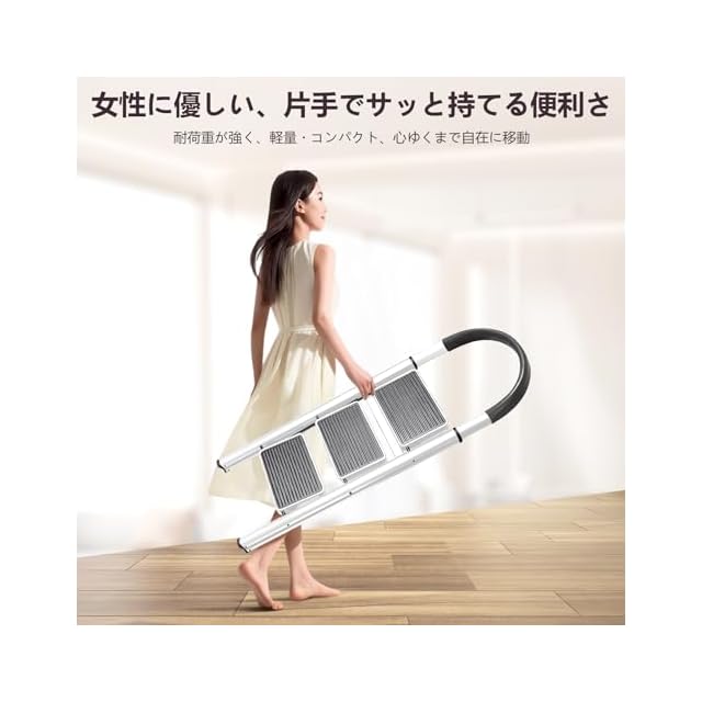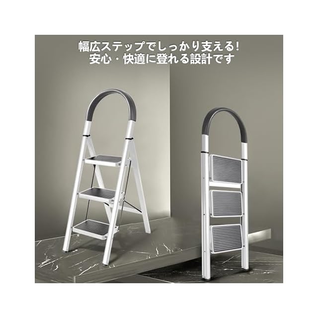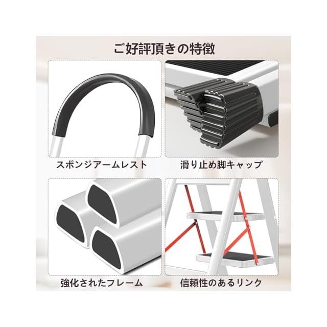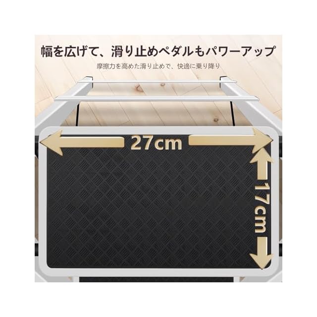 卓越した安定性:特許技術による4点支持設計で、滑り止めの足がしっかりと地面を捉え、安心して作業できます!特別な表面処理を施した踏板は、滑りにくく、安全性を高めます。雨の日でも安心して使用できます。