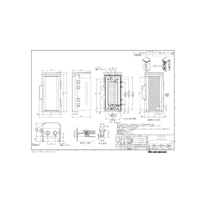 ●入数(個):1<br>●扉形式:片扉<br><br>●設置場所:屋外<br>●IP規格:IP44<br>●取付基板:木製基板(9mm)<br>●ボックス板厚:扉1.8〜4.0mm ボデー1.8〜4.5mm<br>●色彩:ライトベージュ色(5Y7/1)<br>