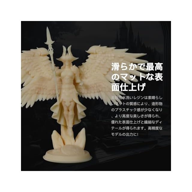 【水洗い可能&高精度&マットな質感】水洗いが出来るレジンで、面倒なIPA洗浄不要、環境にもお財布にも優しい!コスト削減で効率アップ。非常に作業が楽です。ひび割れが起きづらく、精度もしっかりでてベタつかない。また、素晴らしいマットの質感により、造形物のプラスチック感が少なくなり、より高度な美しさが得られ、優れた表面仕上げと繊細なディテールが得られます。