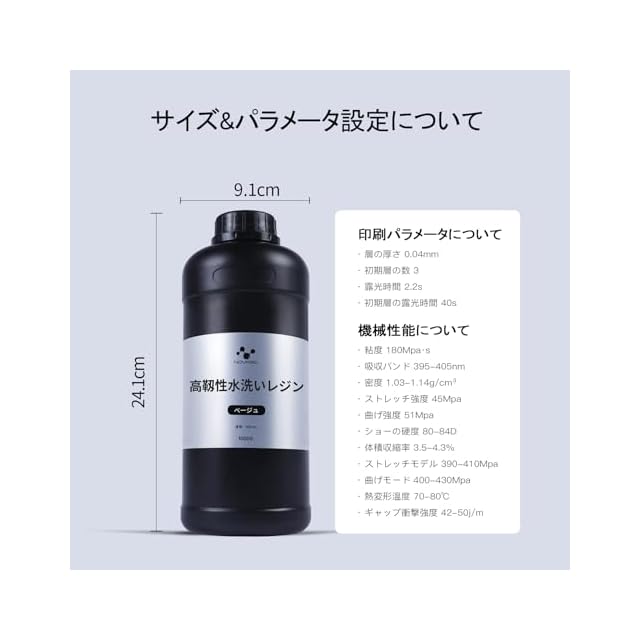 【信頼のNOVA3D製】今までにない最強の高靱性水洗いレジンが登場!!!NOVA3Dが自信を持って、レジンの研究を重ね、ノウハウを蓄積し、多くの人の協力と、根性で長時間の研究を経てようやく「より良い高靱性水洗いレジン」を完成させることができたのです。ぜひ1本お試しください。