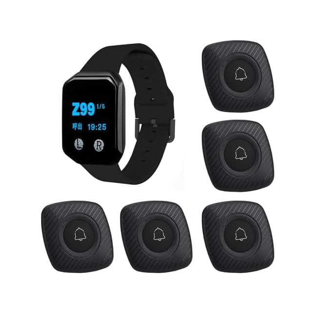 FLYDOG ワイヤレス 呼び出しベル 介護者 ポケットベル 居酒屋 飲食店呼び出しチャイム SOS コール ボタン 送信機 受信機 看護師 呼び出し アラート 患者 介護 病院 工場 ヘルプ システム(受信機(黒)+M1(黒と黒)*5個)