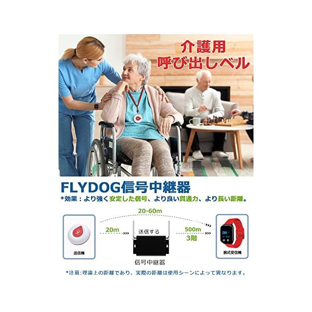 【安心】呼び出しベル ワイヤレス、お買い上げ日より、この商品には1年間のが付いておりますので、安心してお買い求めください。生涯の技術サポート。日本語説明書での配達。【注:FLYDOGの子機に変更可能。 別の社 互換性ありません!】