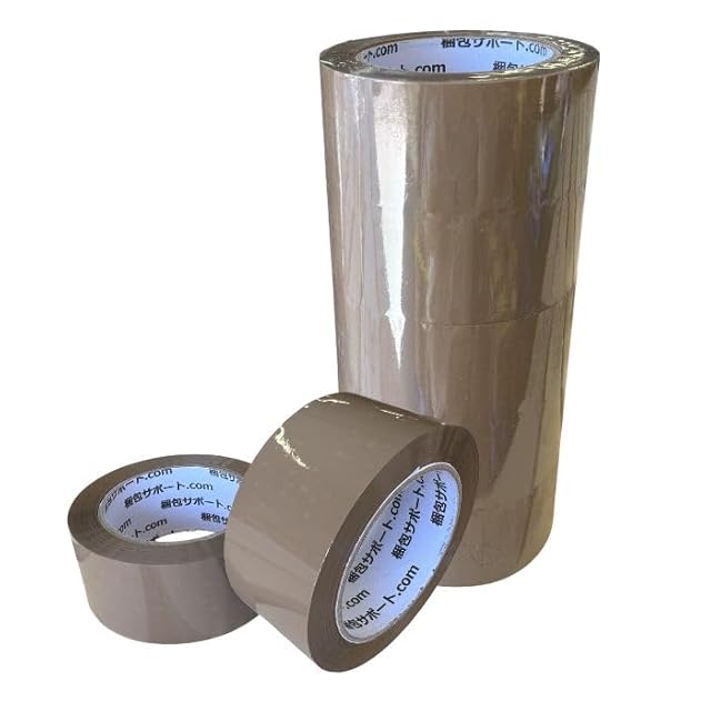OPPテープ, 幅48mm x 長さ100m, 厚み45μ, 5巻 茶 WRAPEACE