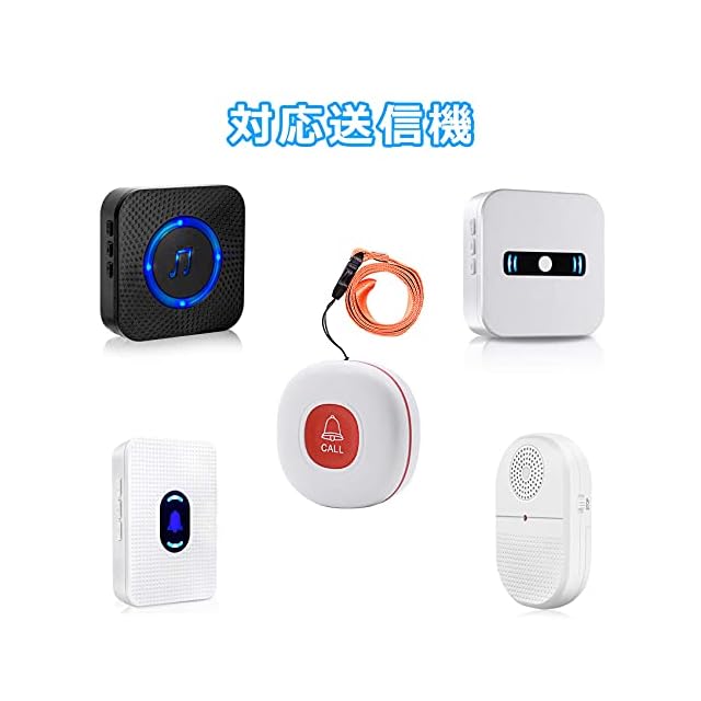 受信機とペアリングしてから、送信ボタンを押して介護者/家族にSOS信号を発信できる緊急連絡ベルです