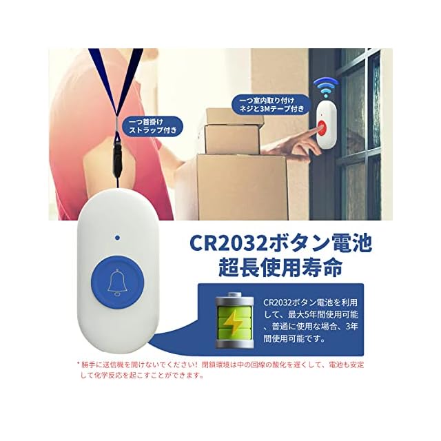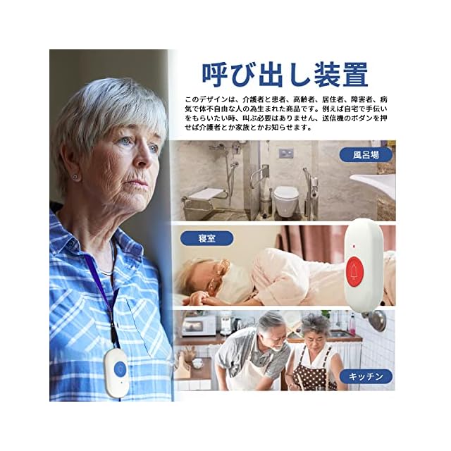 【緊急連絡呼び鈴】 この呼び鈴は高齢者や障害者のために設計されており、緊急時に助けを求め、救助時間を節約します。ご不便な時、コールボタンを押して介護者/家族にSOS信号を発信できる緊急連絡ベルです。老人、妊婦、患者に最適です。