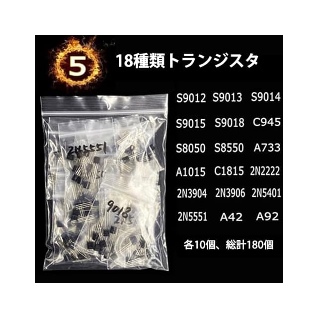 【トランジスタ】S9012 S9013 S9014 S9015 S9018 C945 S8050 S8550 A733 A1015 C1815 2N222 2N3904 2N3906 2N5401 2N5551 A42 A92 (全18種類、各10個、総計180個)